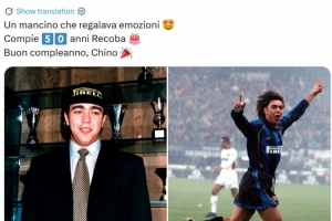 中国男孩!国米官方祝雷科巴50岁生日快乐,曾随队夺6项冠军